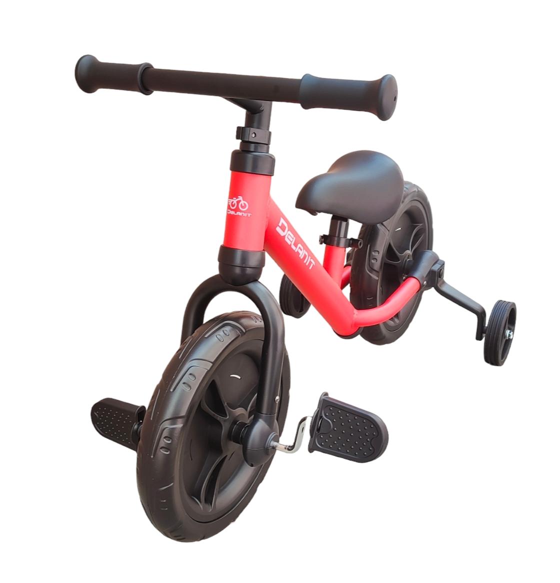 Купить беговел - велосипед с педалями и боковыми колёсами 2в1 красно-чёрного цвета, Delanit, TF-01 в Минске ребенку можно на нашем сайте Minsktoys.by. Мы предлагаем низкую стоимость и быструю доставку в Брест, Витебск, Гродно, Могилёв, Гомель и любой другой город Республики Беларусь.