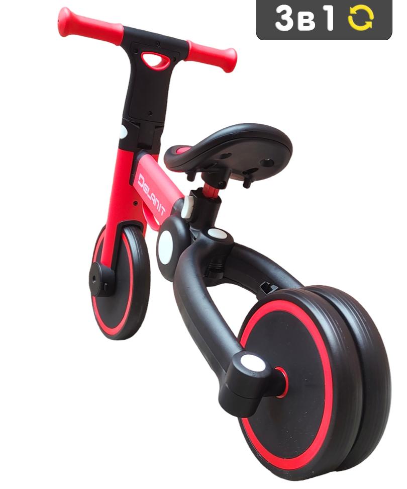 Беговел велосипед детский 3 в 1 с педалями, Delanit T-801Red