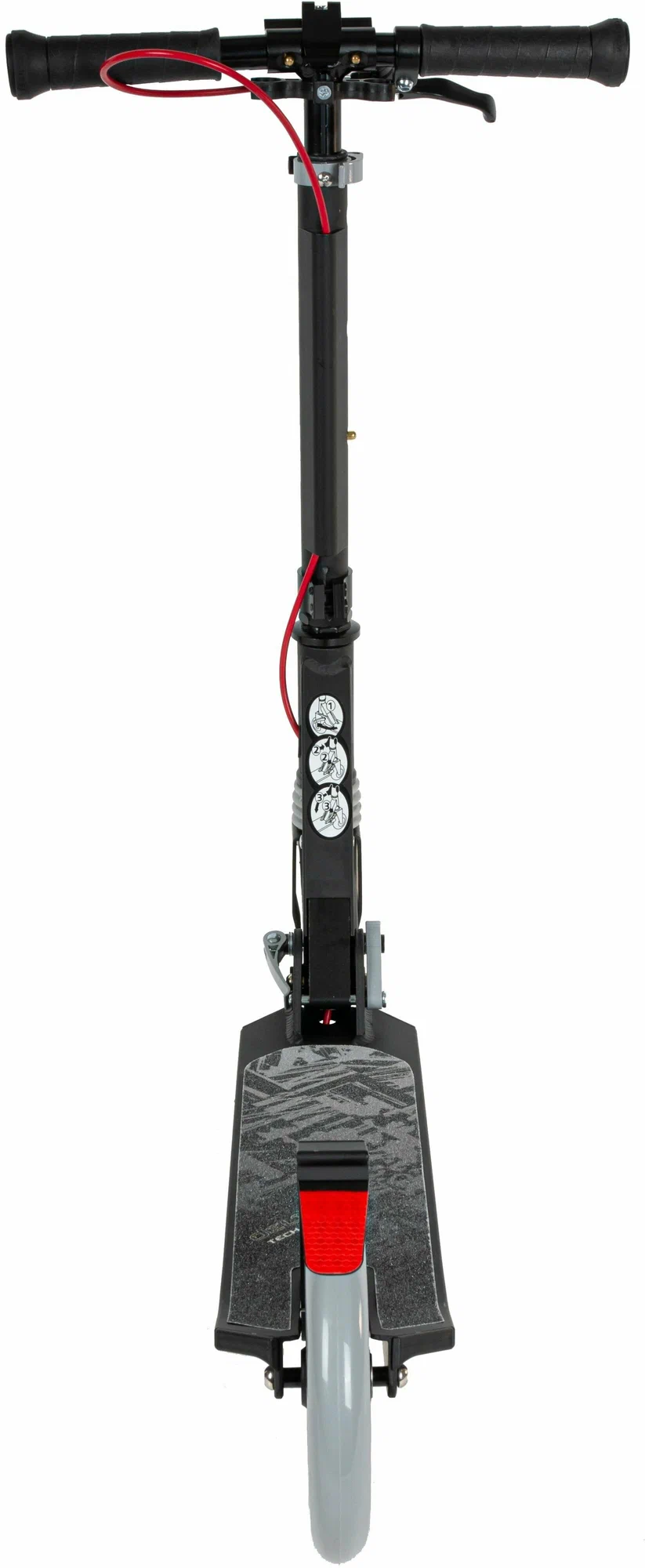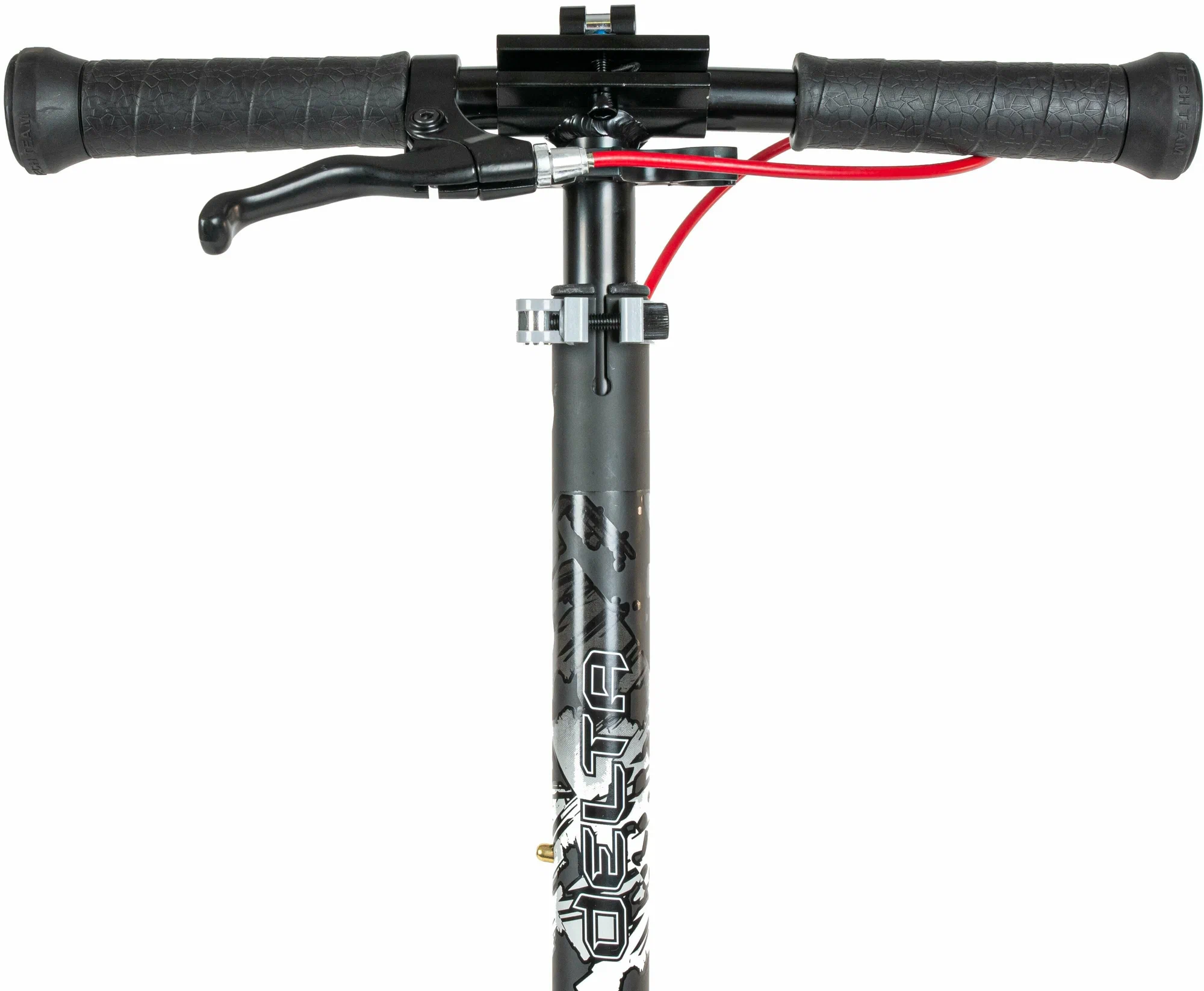 Руль самоката TechTeam Delta регулируется по высоте и имеет несколько положений фиксации: 75, 82 и 89 см. Это позволяет подобрать удобную высоту для различных пользователей. Площадка для ног имеет средний размер 12*53 см и достаточную полезную длину в 32 см, что обеспечивает комфортное размещение ног.