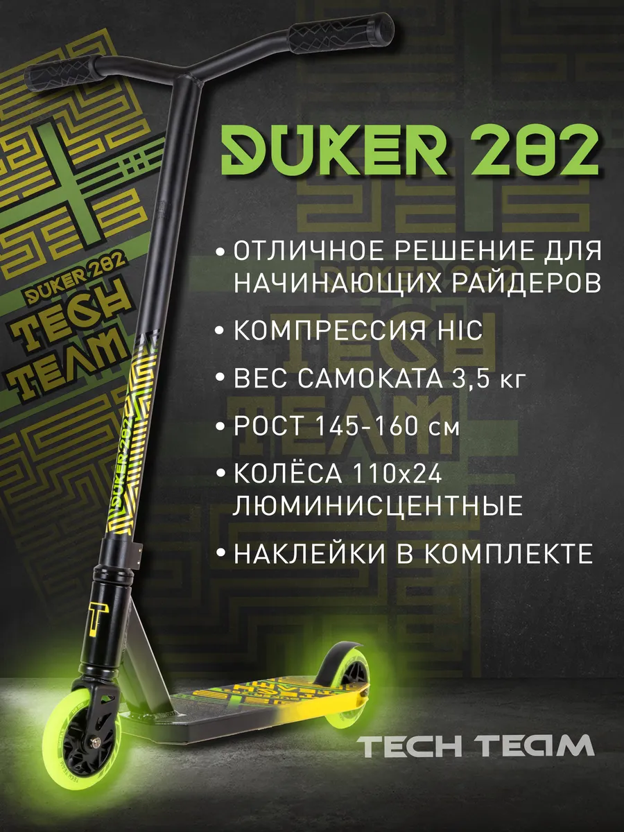 Самокат трюковой Duker 202 black/yellow,Tech Team 040154