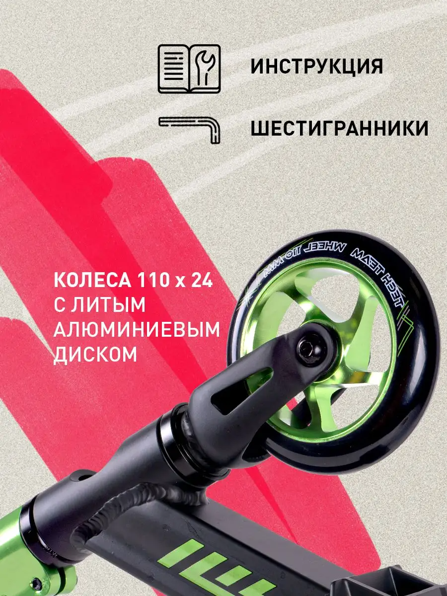 Самокат трюковой Practic черно-зеленый,Tech Team 373632
