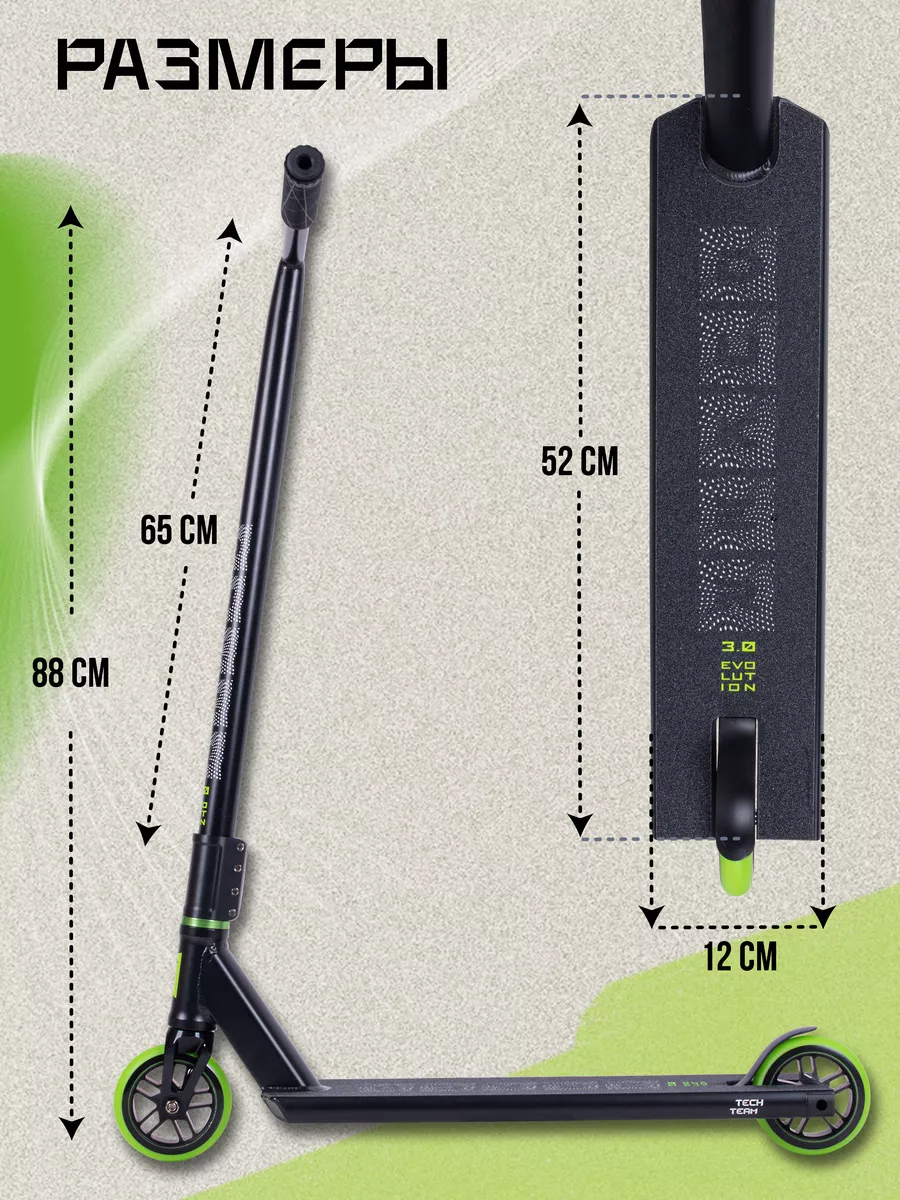 Самокат трюковой Duker 3,0 черно/зеленый,Tech Team 440411