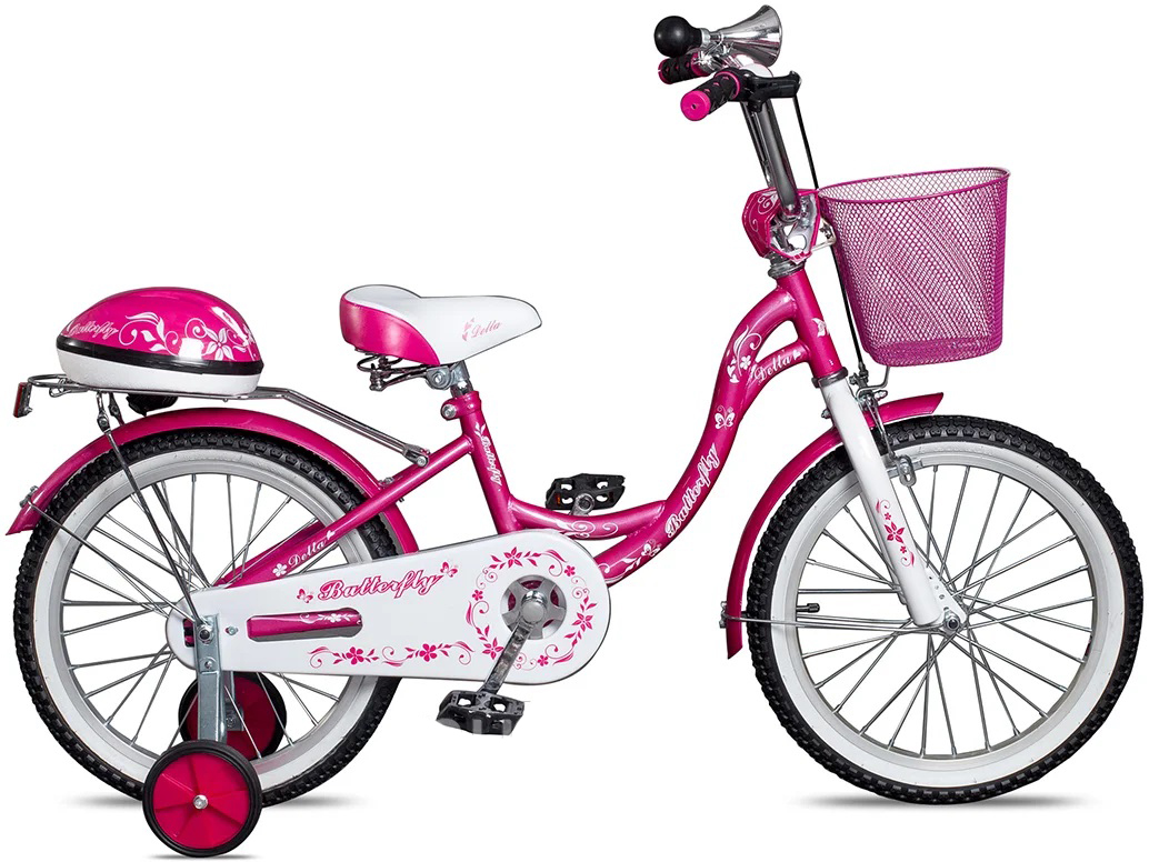Детский велосипед Delta Butterfly 16" New цвет бело-розовый или розовый с передним ручным V-BRAKE тормозом, шлемом и мягкими светящимися полиуретановыми приставными колесами, мишурой в ручках руля- это велосипед для юных принцесс 4-7 лет.