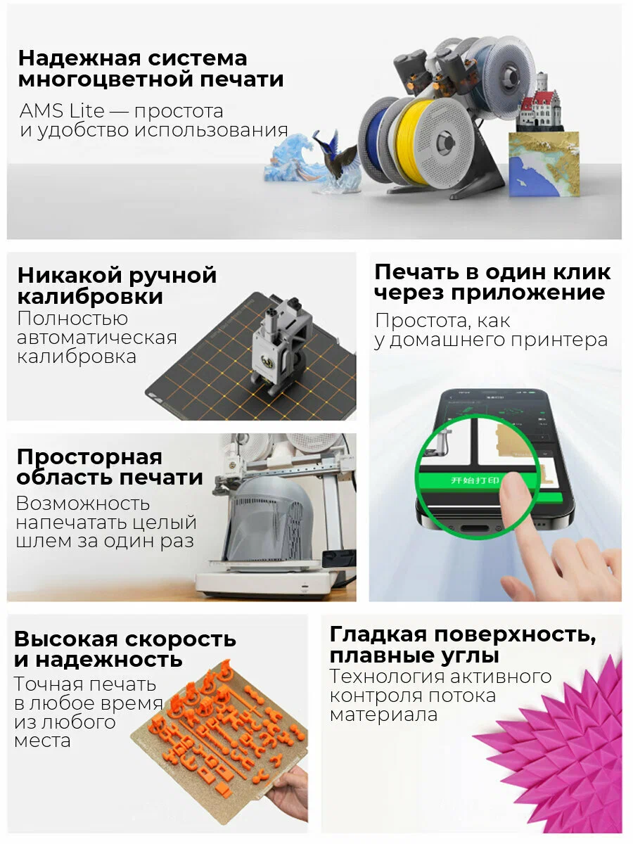 Подарите вашей семье инструмент для воплощения фантазий. 3D принтер Bambu Lab A1-EU — это современный, быстрый и невероятно удобный помощник, который превратит идеи в осязаемые вещи, делая обучение увлекательным, а творчество — безграничным.